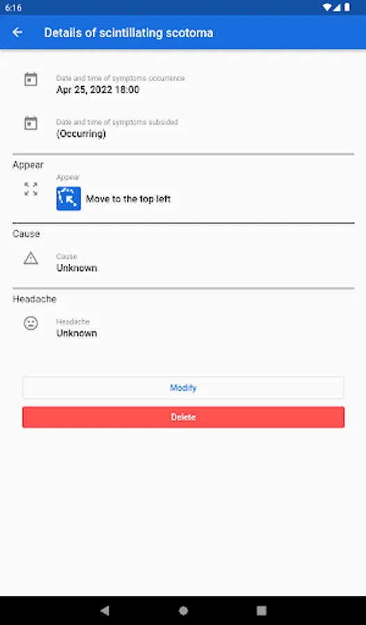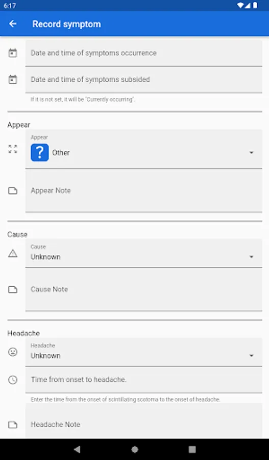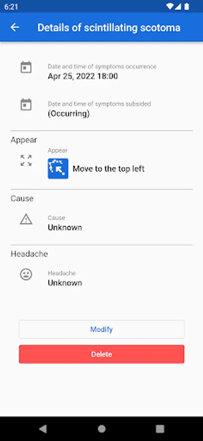 You can keep a record specifically for the symptoms of the Scintillating scotoma.