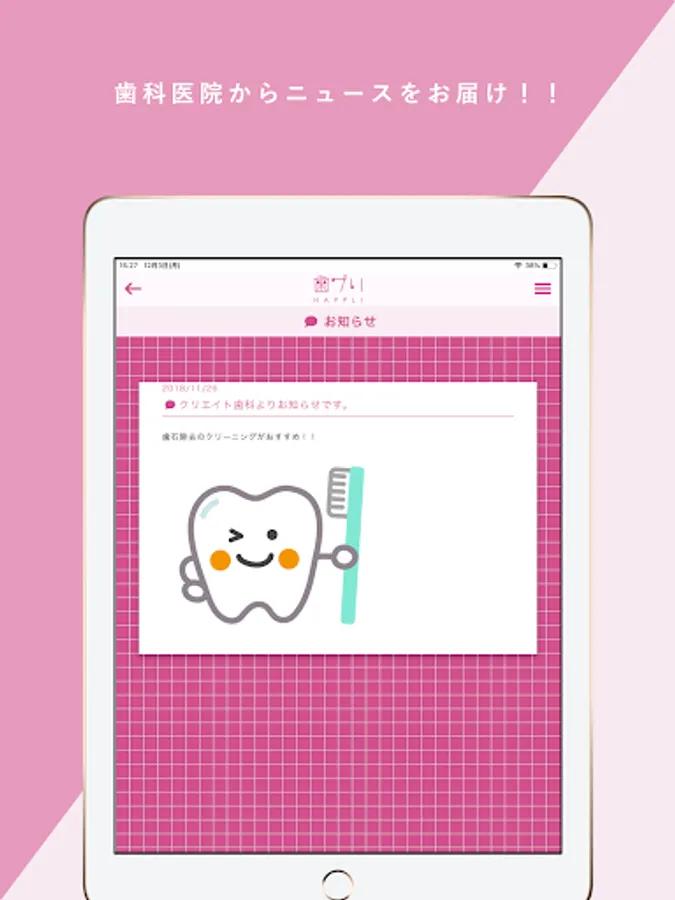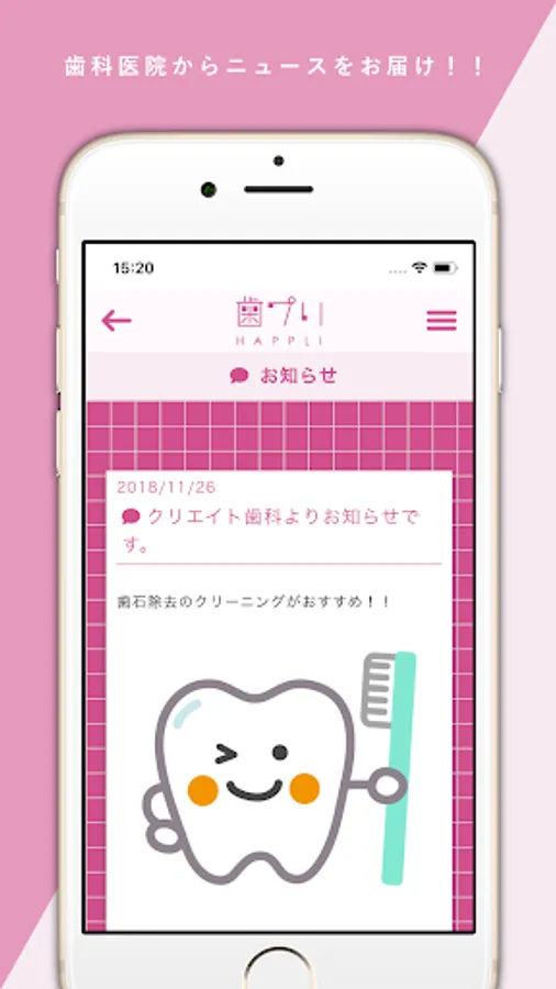 You can get information you want to know from treatment information, announcement, introduction of staff, images about dental clinic.