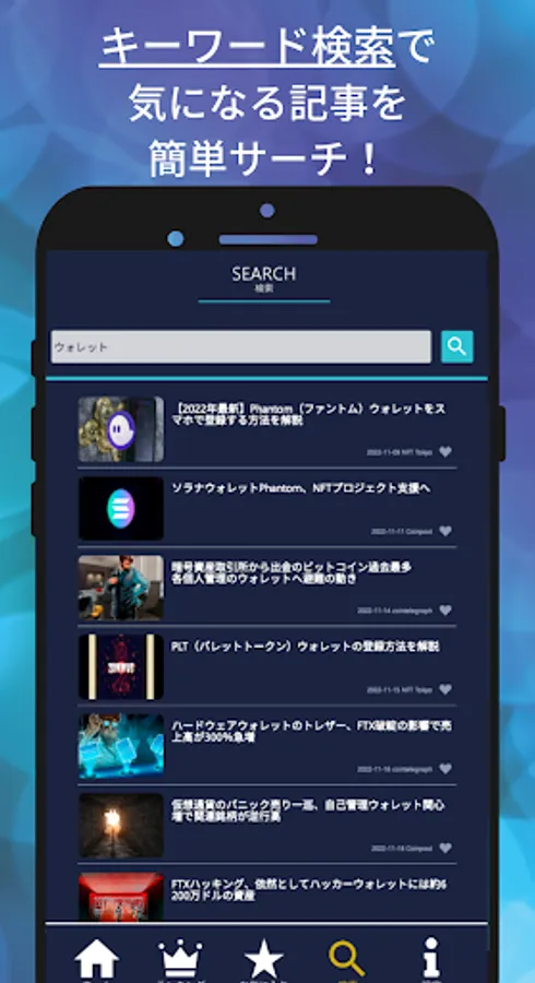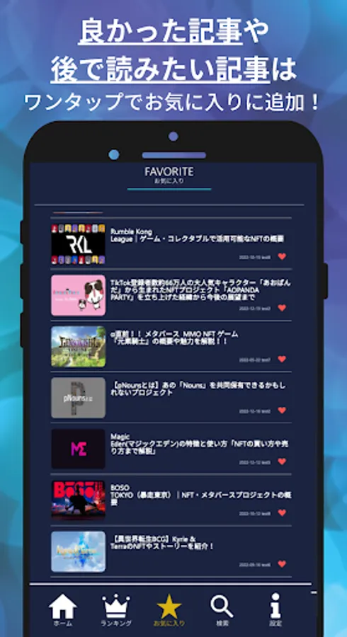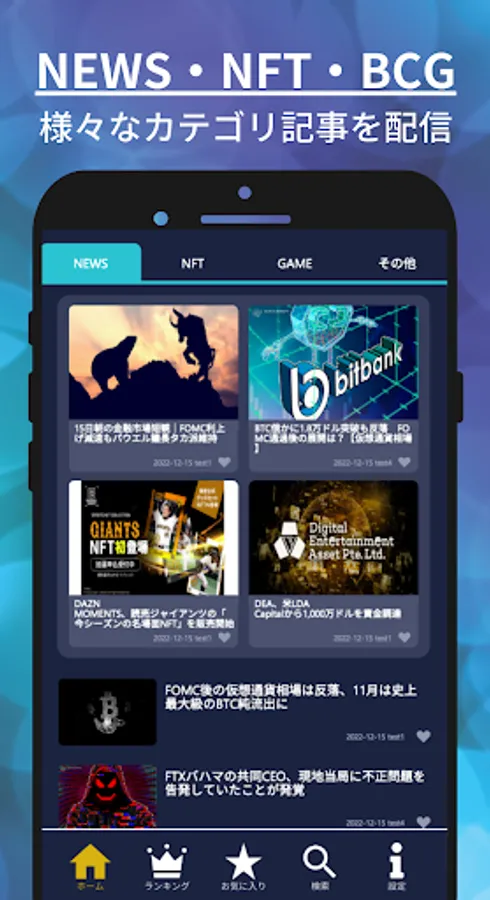 ● You can freely read the topics you want to read from multiple categories such as "virtual currency general news", "NFT", "BCG NFT game", and "articles for beginners".