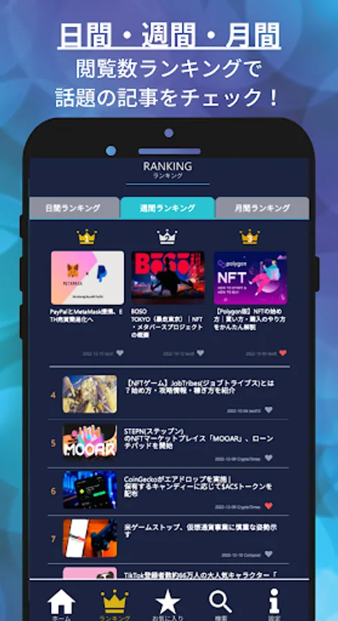 ●A ranking function that allows you to see at a glance the trend of popular articles by “Daily”, “Weekly”, and “Monthly”! What kind of content is it now?