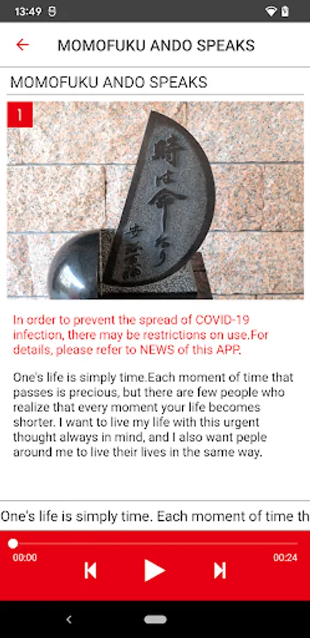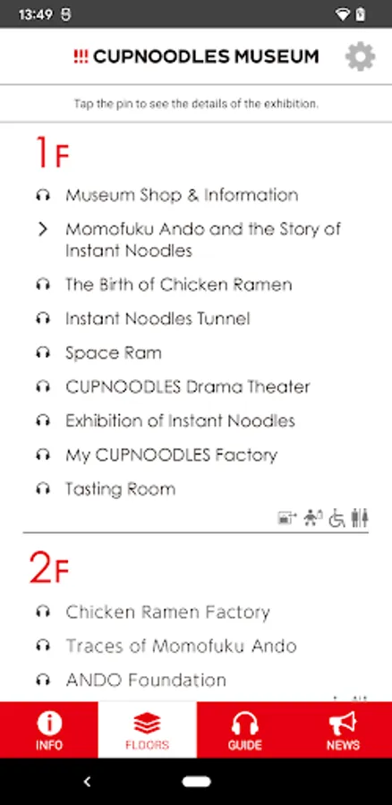1.You can read the explanation text provided in the app anywhere. However, the audio guide can only be accessed when you are visiting the MUSEUM.