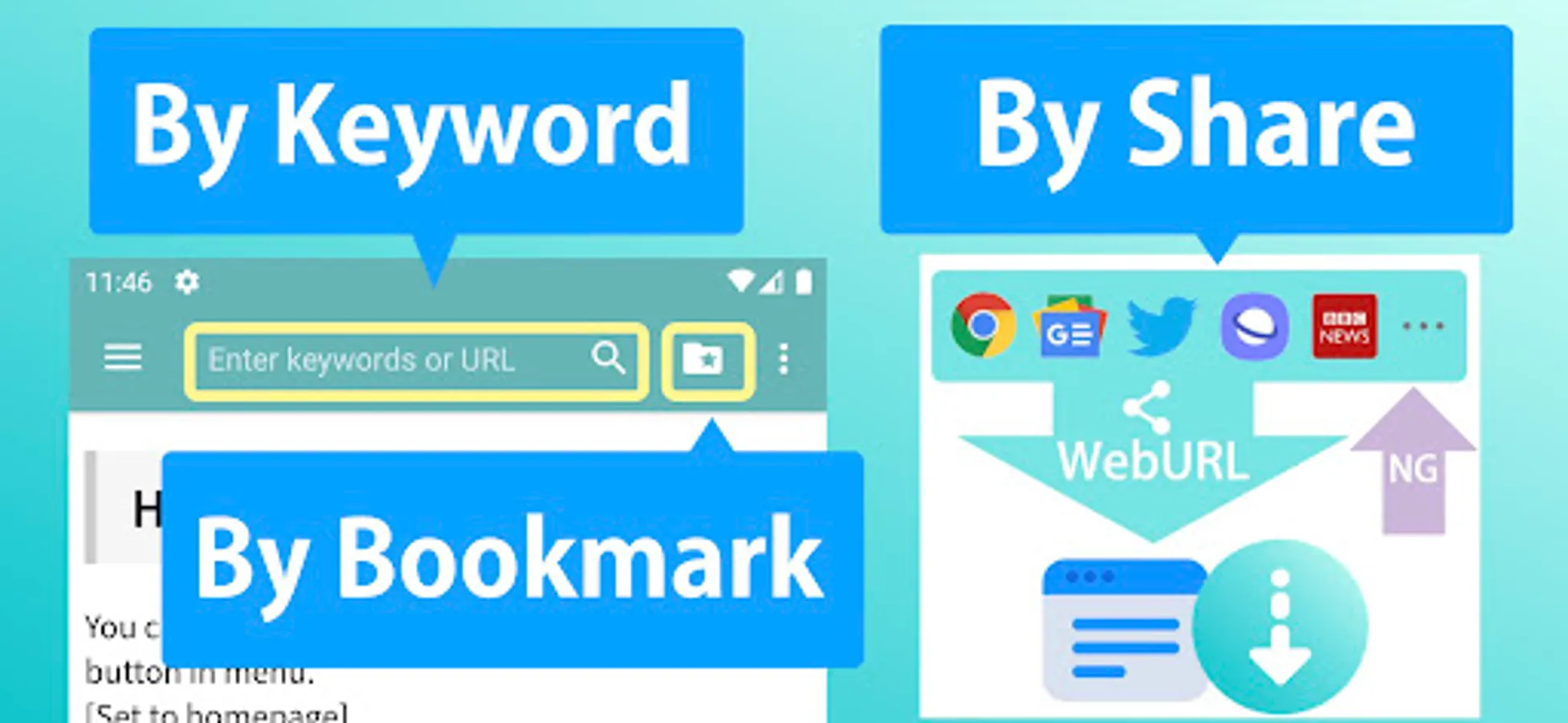 *If this application causes issues such as starting up at an unnecessary time, please go to the menu’s “delete default browser settings” to be redirected to your android’s settings menu to delete the default browser application.