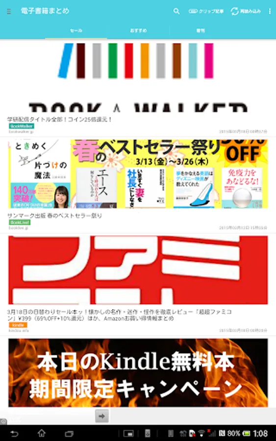 Various sales are updated, such as free manga, free magazines, free novels and half-price sale.