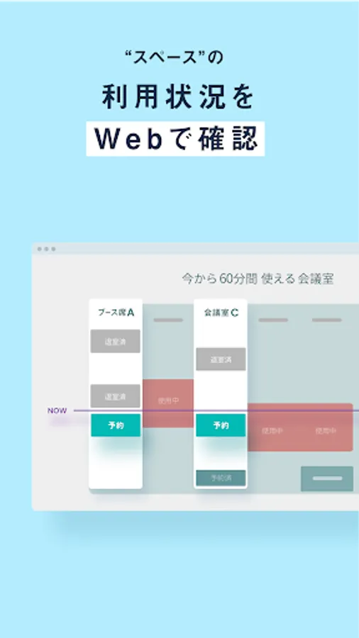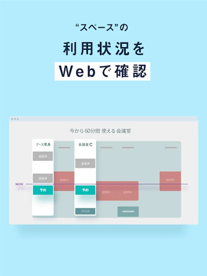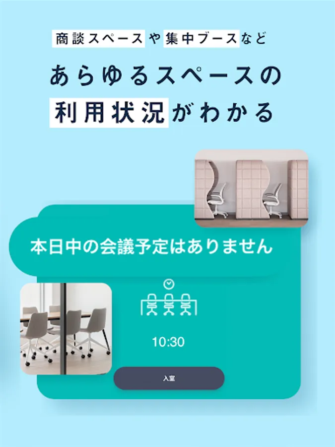 会議室・商談スペースの利用状況を俯瞰して把握し、急な打ち合わせでも慌てずに場所が確保できるようにしましょう。