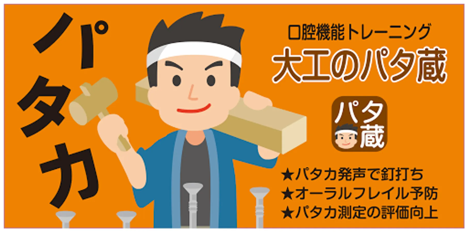 Oral frailty prevention app. Speak Pa Ta Ka and hit the flowing nails! Daily training is effective for preventing long-term care and improving oral deterioration.