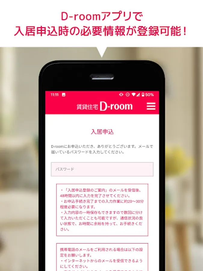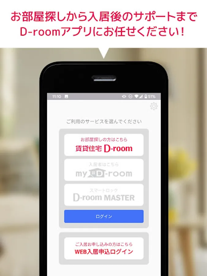 ・ Various change procedures and applications for moving out can be made at my D-room. It is convenient with simple procedures at any time available 24 hours a day.