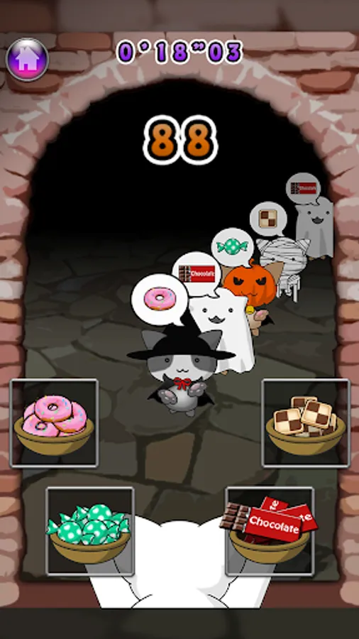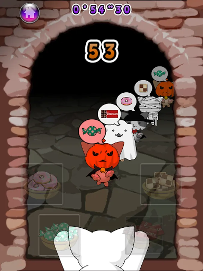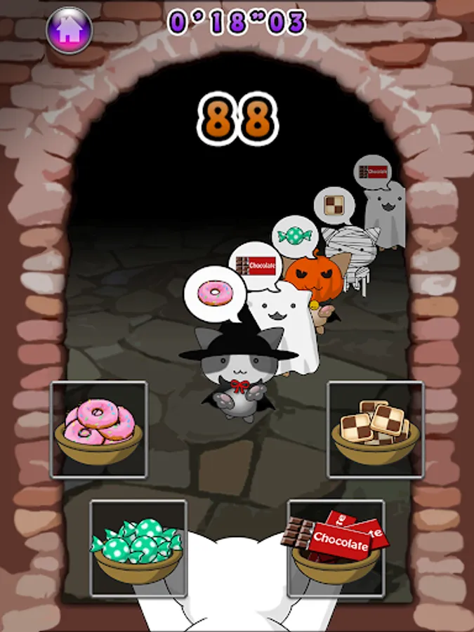This game is the 2nd Android game for the Web Game Site "DAN-BALL". This is a Touch-Action game to give the candy kittens with Halloween costumes want.