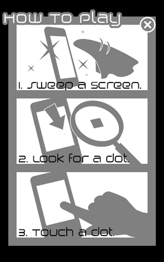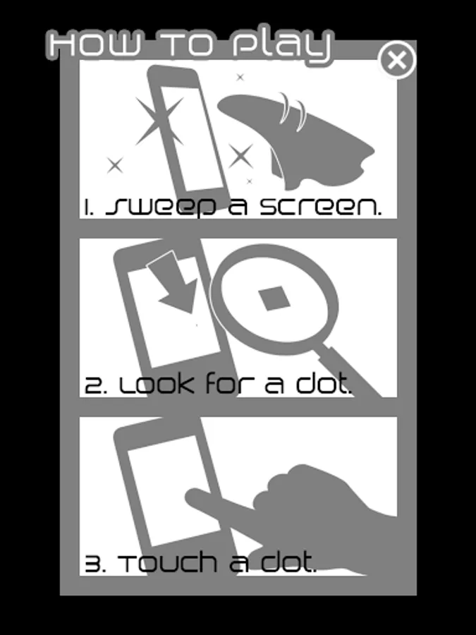 Touch the dot to find the only point of different colors in the screen. Next dot will appear when you touch the correct location.