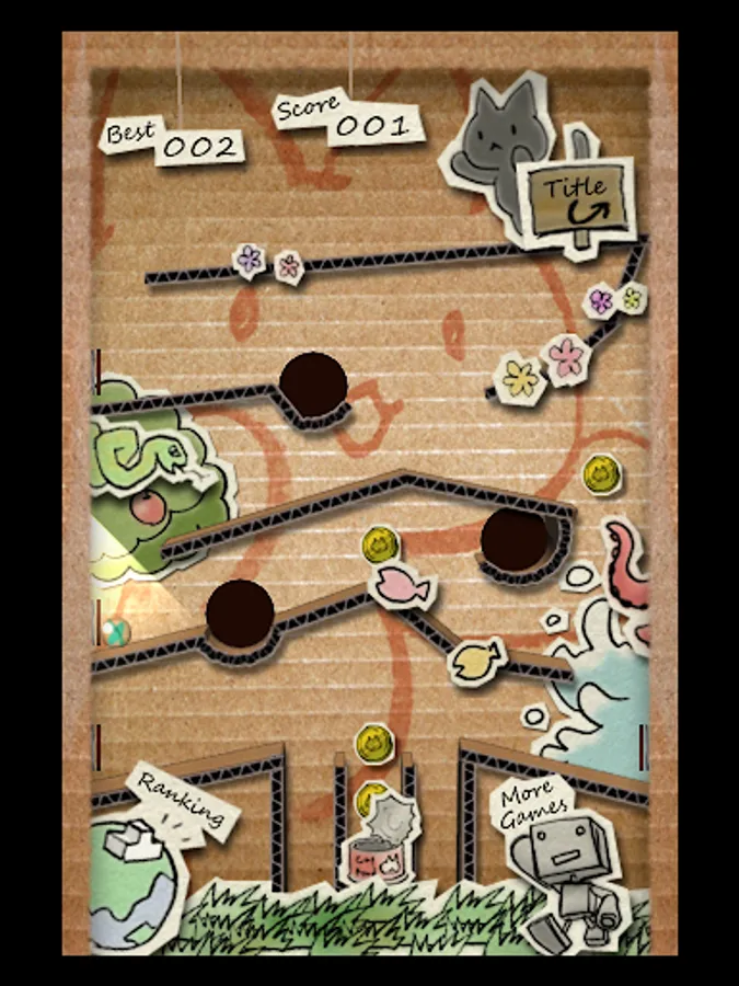 Cute cat stage made of paper, Realistic pre-rendering 3DCG stage, Please get a coin. Operating with realistic ball physics of motion.