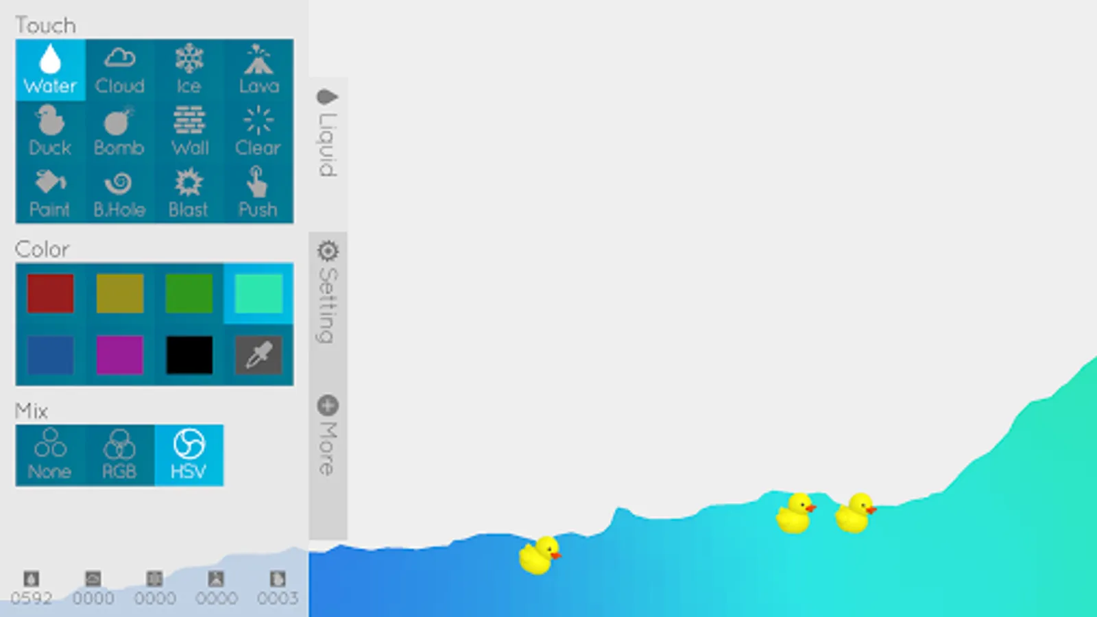 This fluid simulation game allows you to play with water. Enjoy adding some colors or transform water into clouds or ice.
