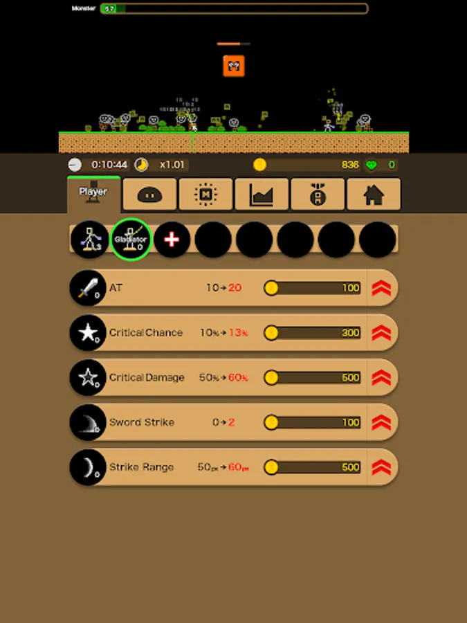 Stickman after upgrade in gold and jewel, please earnestly defeat a lot of monsters. By upgrade the monster, enjoy fight against powerful monsters.