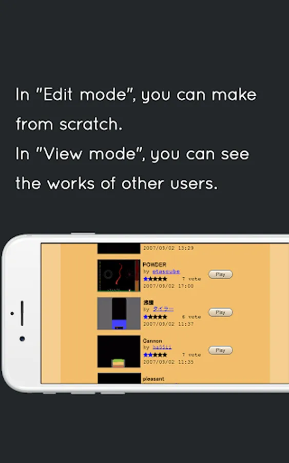In "Edit mode", you can make from scratch. In "View mode", you can see the works of other users.