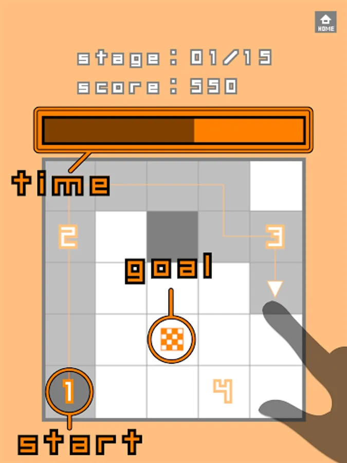 Trace the numbers in order with one stroke until you reach the goal within the time limit. Clear the stream of stages and aim at a high score. Tracing the panel as fast as possible is a key to get a high score.