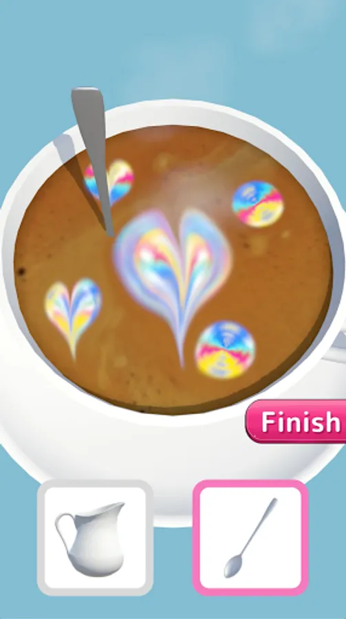 In this game, you will color the cream with the color of your choice. Then form the shape you want. In the end, you can make the best latte art with the design you want.