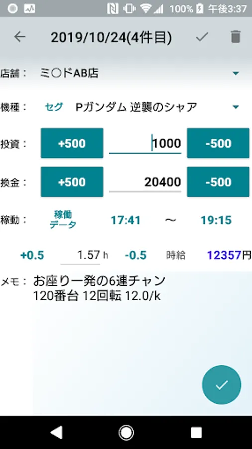 Enter the investment amount, redemption amount, store, model, memo, and operating hours.