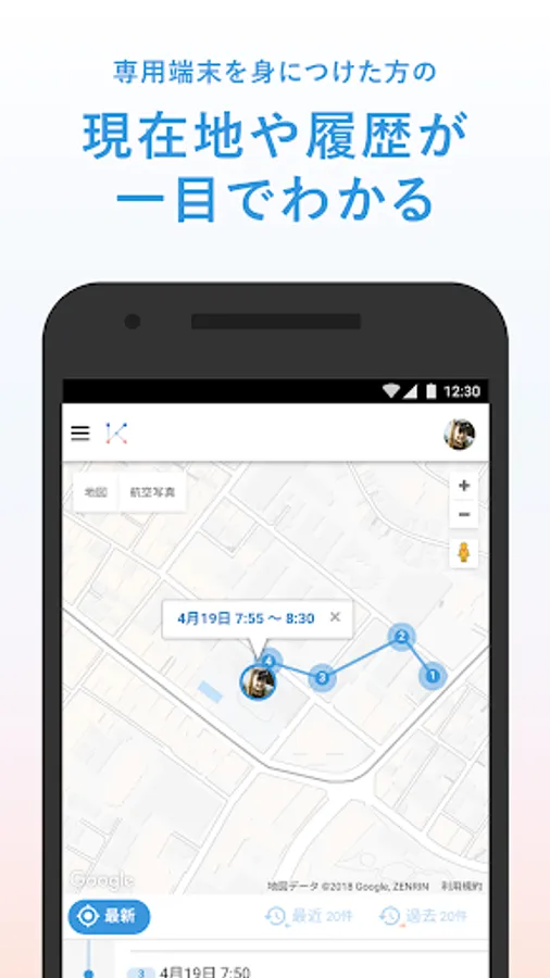 A place and time of the forbidden GPS terminal can be confirmed on the map. You can browse the whereabouts history dating back up to 100.