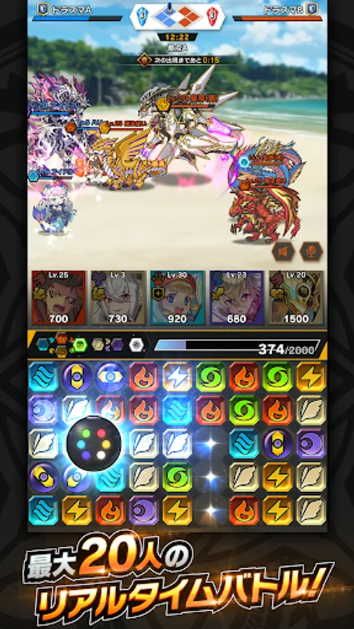 Real-time "Puzzle Guild Battle" with up to 20 people!