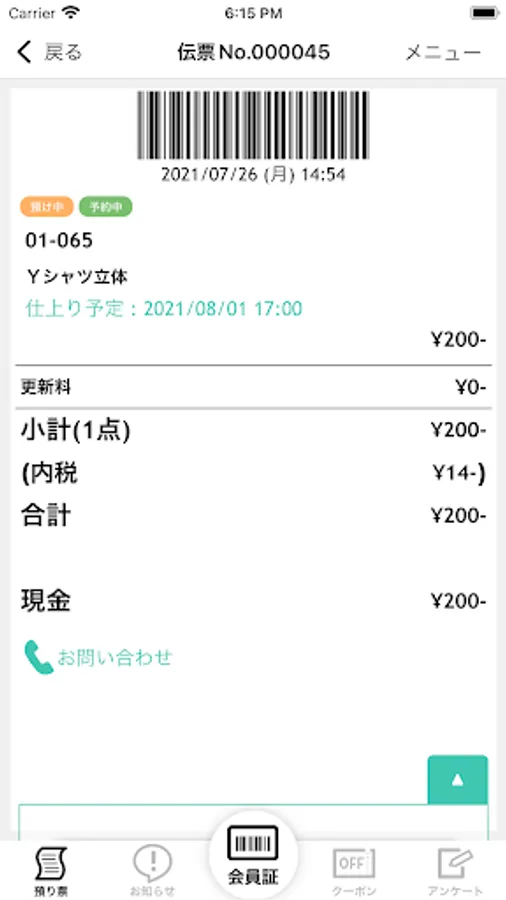 Furthermore, if a questionnaire is sent from the store, it is possible to answer it.