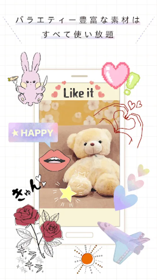A wide variety of popular character materials are also available, and you can create stylish photos with simple operations.