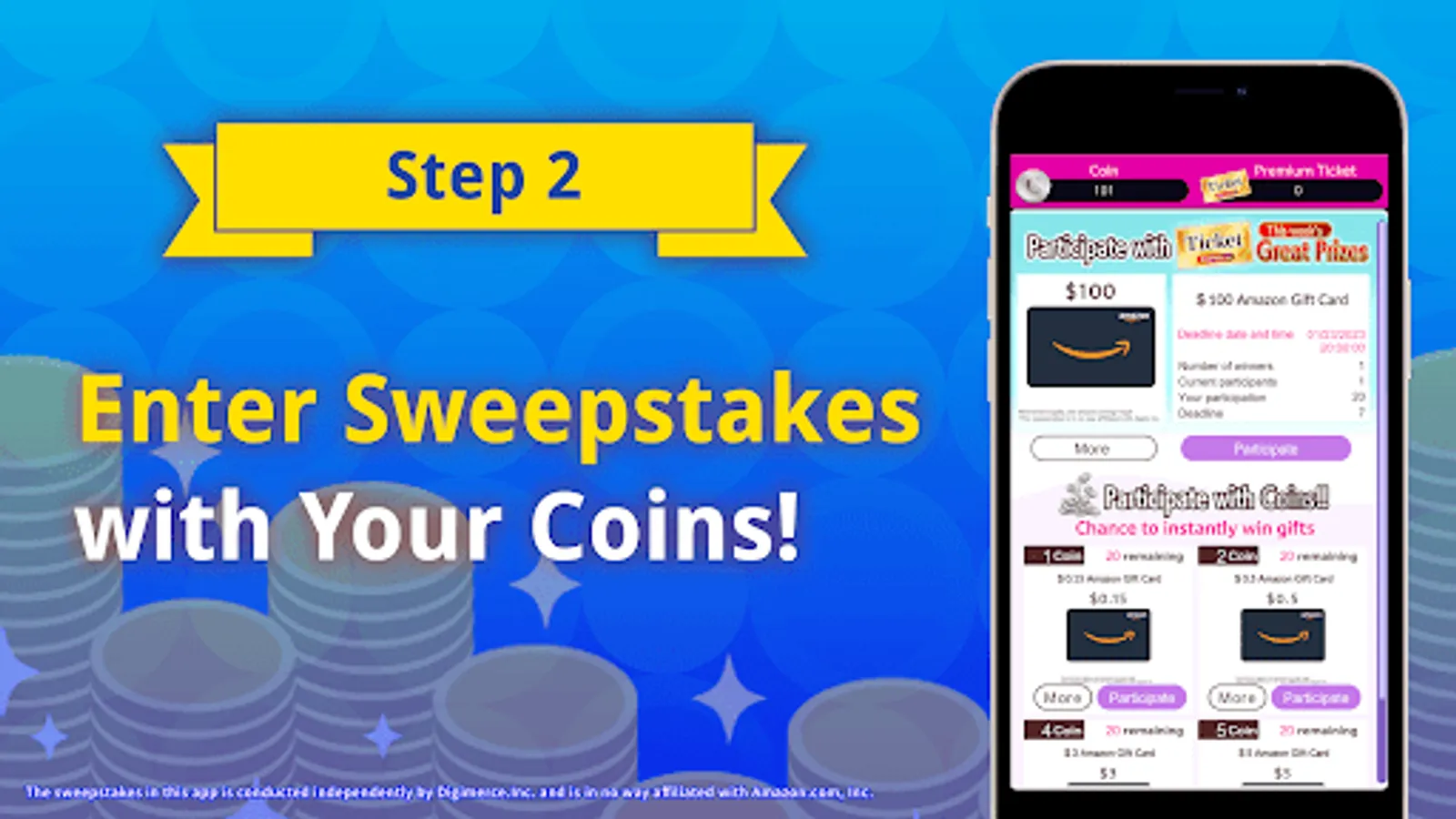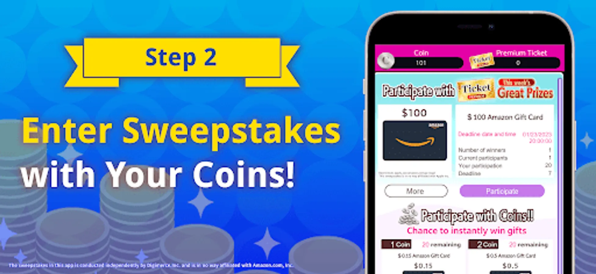 The coins from the game could be used to participate in the sweepstakes and win Amazon Gift Cards, or exchange for gifts directly!