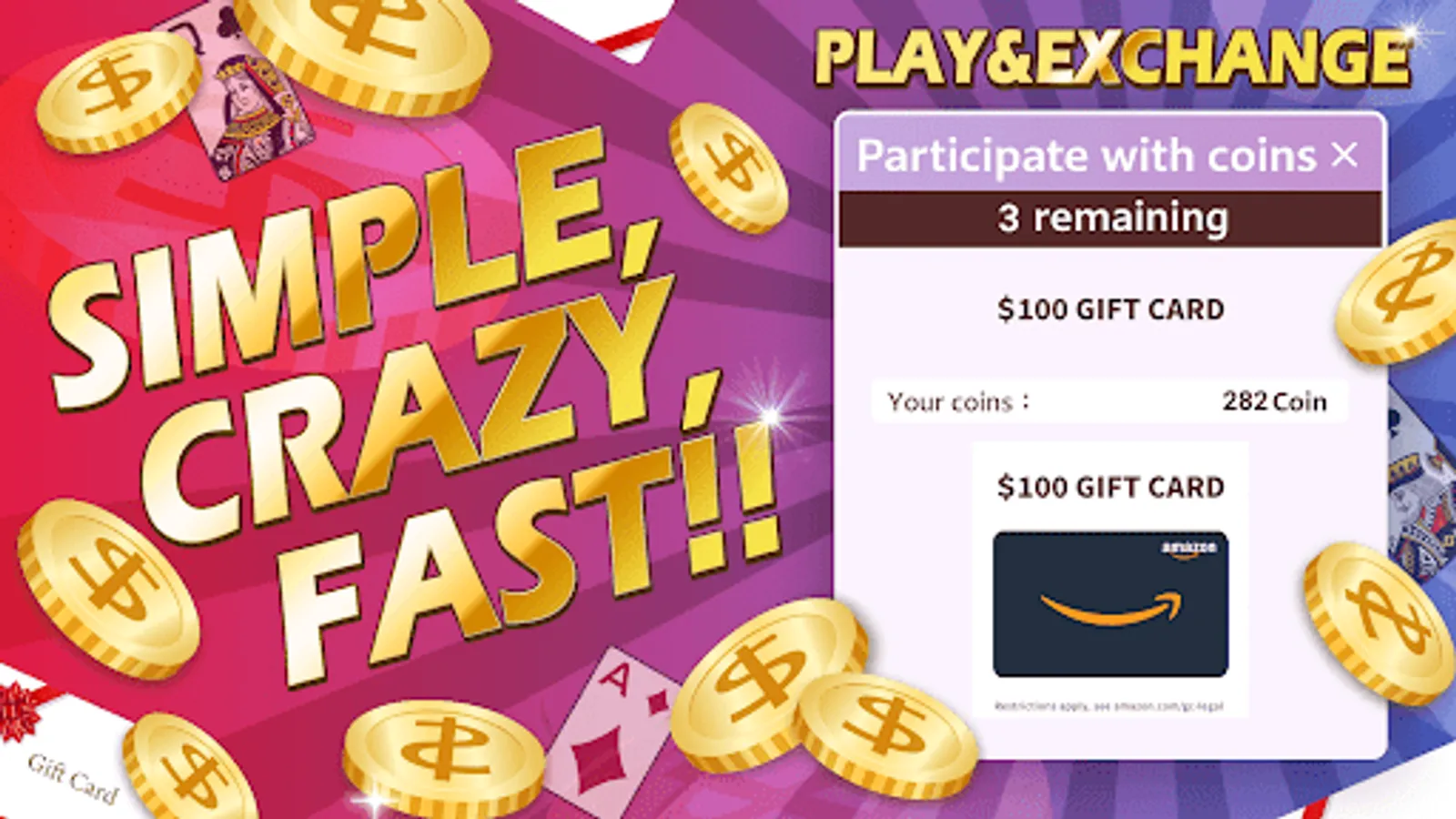 - Play games and earn coins to exchange for cash rewards