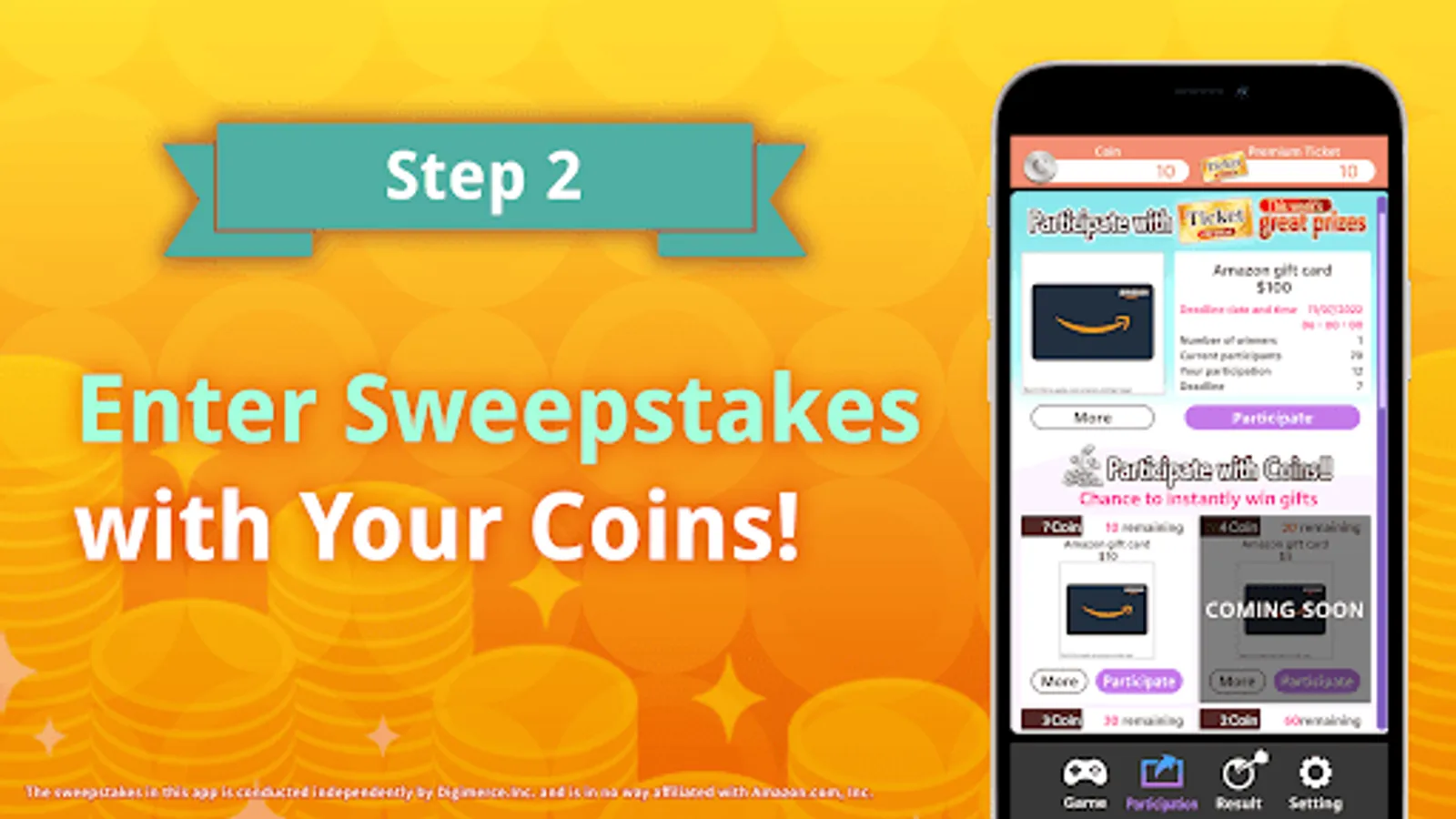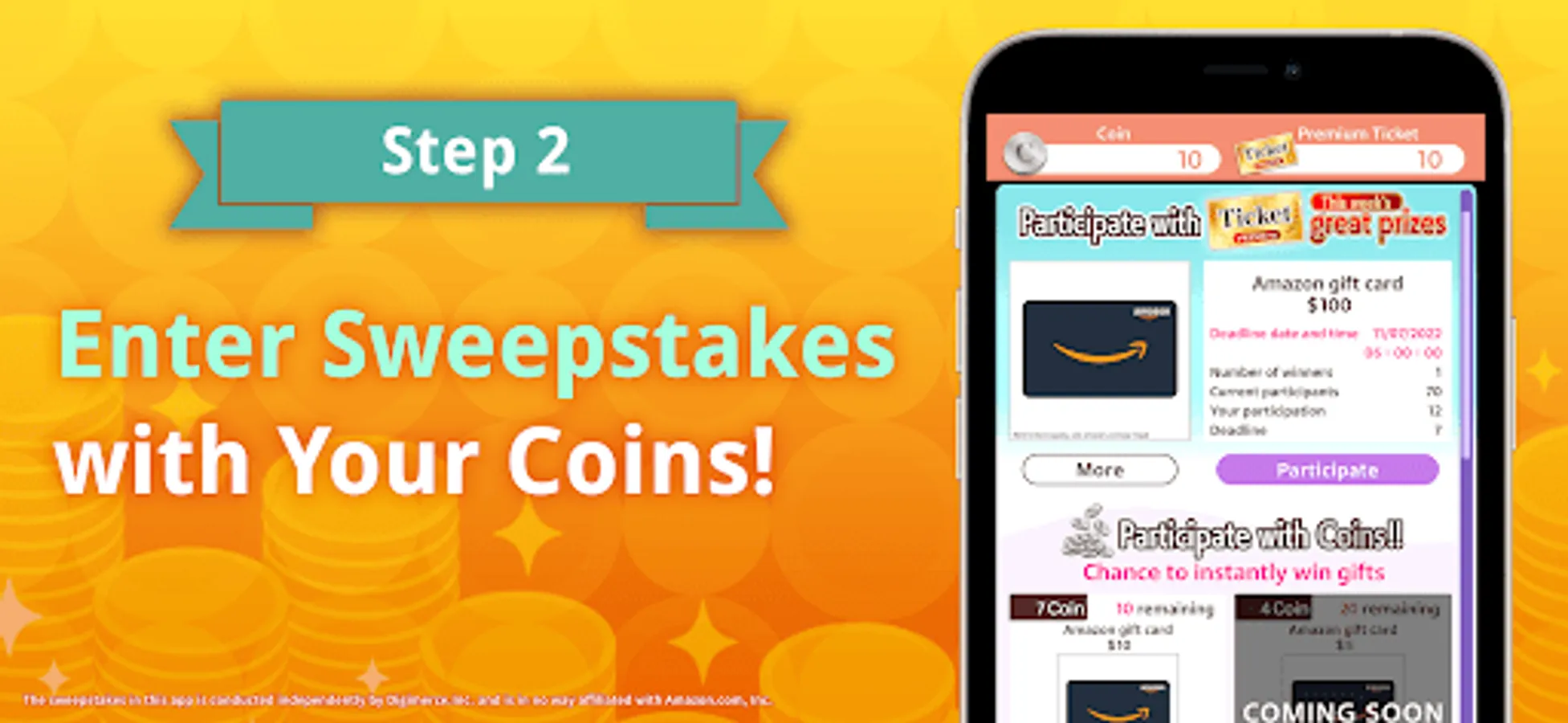 The sweepstakes in this app are conducted independently by the Company (DIGIMERCE Inc.) and are in no way affiliated with Apple Inc. or Apple Japan Inc.