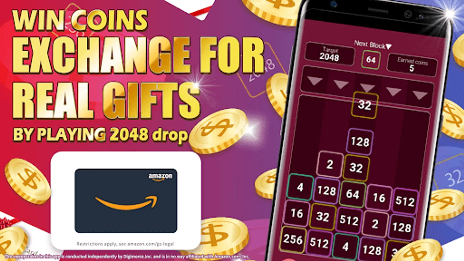 - Cash Rewards - 2048 drop is free to play, with no in-app purchases.