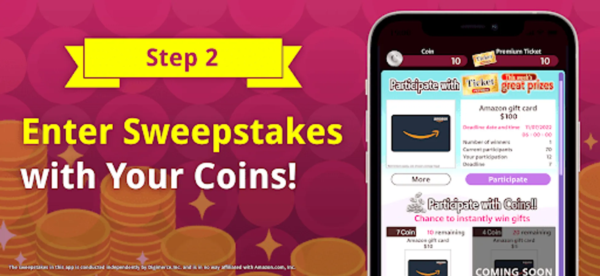 The sweepstakes in this app are conducted independently by the Company (DIGIMERCE Inc.) and are in no way affiliated with Apple Inc. or Apple Japan Inc.