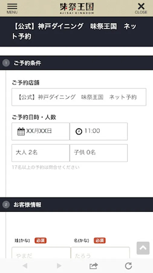 You can request a reservation just by specifying the desired number of people and the date and time and sending it.