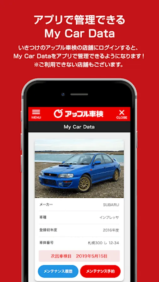 "Apple Vehicle Inspection" application is an application that allows you to make a reservation for vehicle inspections, etc. from the information delivery to customers, guidance on vehicle inspection maturity, in order to ride the car safely and comfortably.