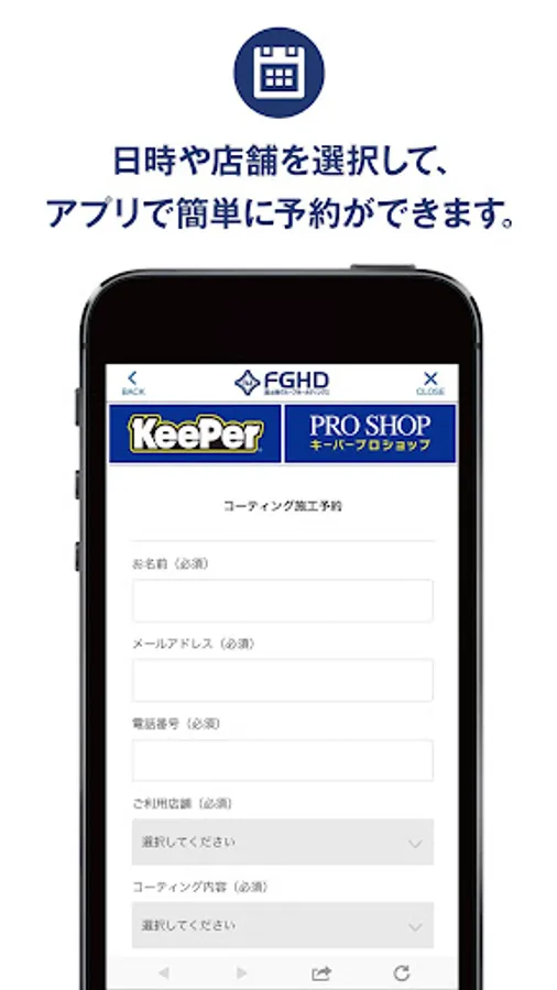 Reservation coating (available at some stores) can be easily booked from the app at any time.