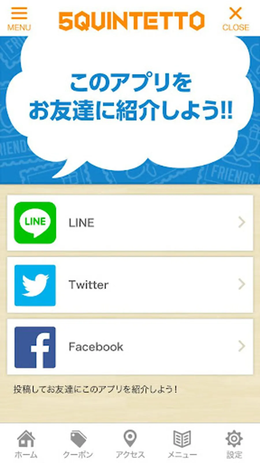In this app, deals service of a variety of information and apps user limited 5QUINTETTO is placed in the hands!
