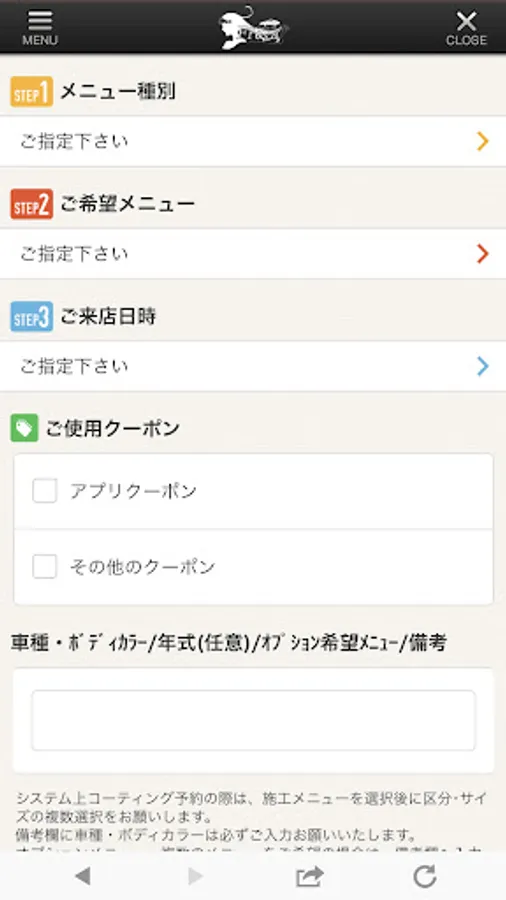 You can request a reservation just by specifying the desired menu and date and sending it.