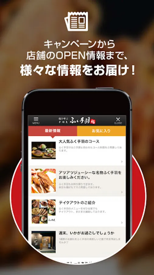 We will promptly deliver the latest information such as "campaign information" and "store information" from Fuku wings.