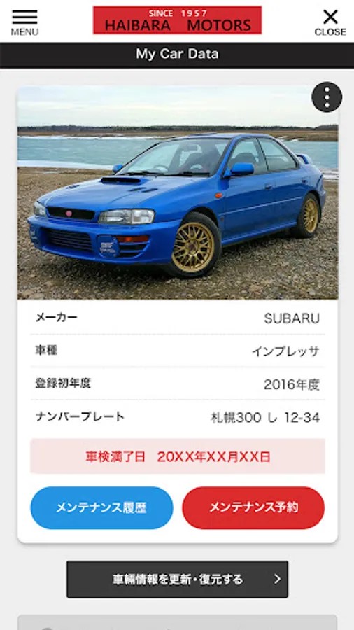 If you visit the store once and have your car registered, enter the necessary information in the app and you can check the vehicle inspection time of your car on the app!