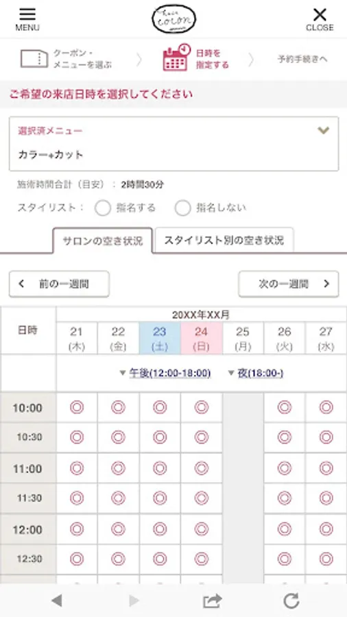 You can make a reservation simply by specifying the date and time from the desired menu and sending it.