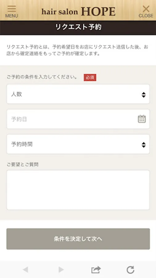You can request a reservation by simply specifying your desired menu, date and time, and sending the message.
