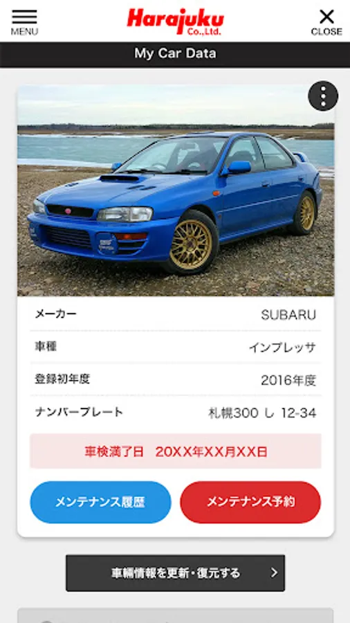 The official app for Harajuku Motors also supports online reservations for maintenance.
