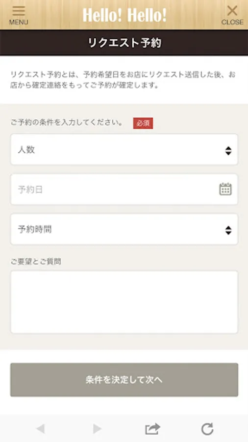 You can request a reservation simply by specifying the desired menu and date and time.