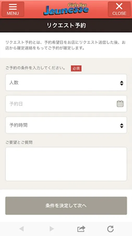 You can request a reservation simply by specifying the desired number of people and the date and time.