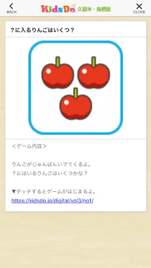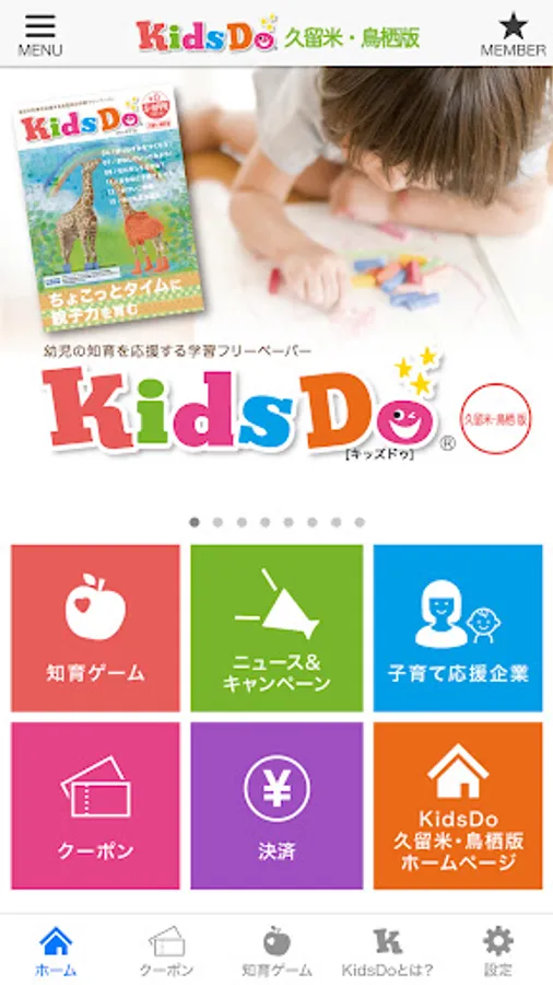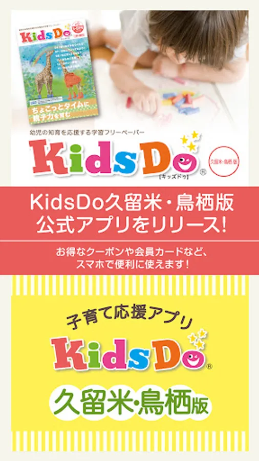 KidsDo Kurume / Tosu version is a community-based type that supports the intellectual education and emotional education of children in and around Kurume City, Fukuoka Prefecture and Tosu City, Saga Prefecture, and supports "cultivating parent-child power in a little time". It is a child-rearing support app.