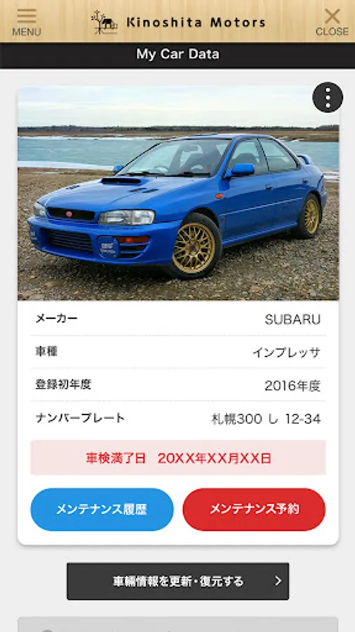 If you visit the store once and have your car registered, enter the necessary information in the app and you can check the vehicle inspection time of your car on the app!