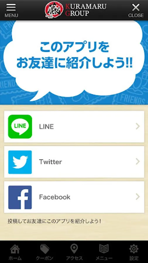 Is the official app of the tavern "Kura circle group" to be deployed to Fukushima city.