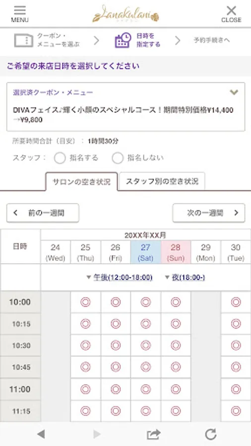 You can request a reservation simply by specifying the desired menu and date and sending.