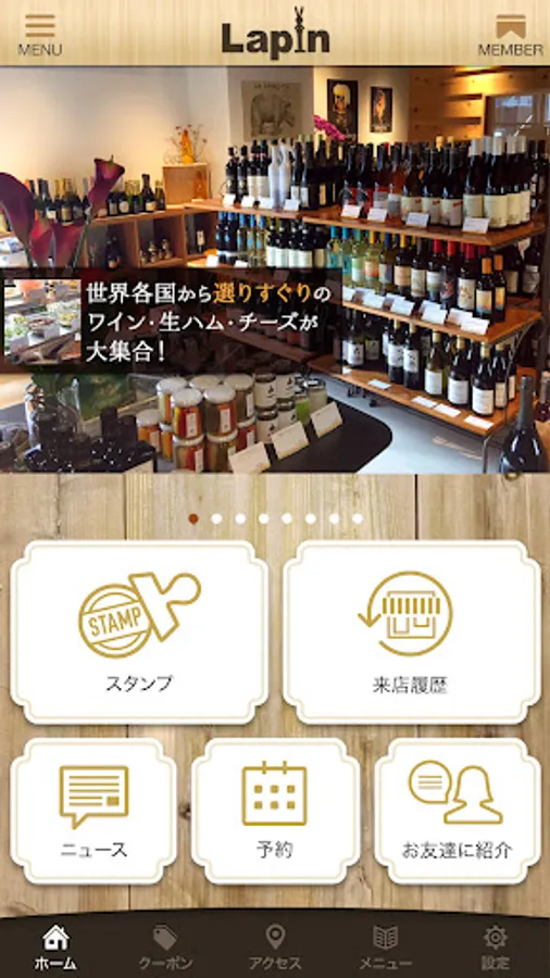 This is the official app of Lapin, a wine and food shop in Nagoya, Aichi Prefecture.