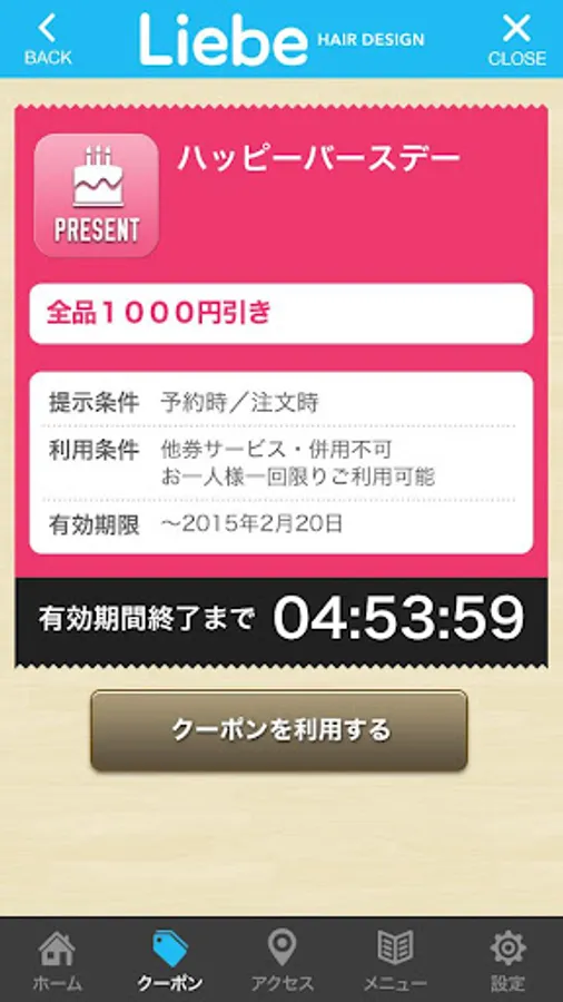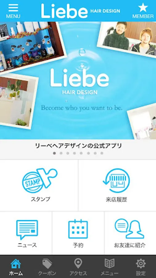 New information and profitable information of "Liebe HAIR DESIGN" will receive through the app.