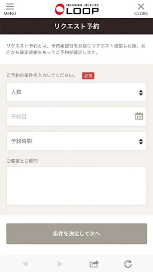 Reservation can be requested simply by specifying the desired number of people and date and sending.