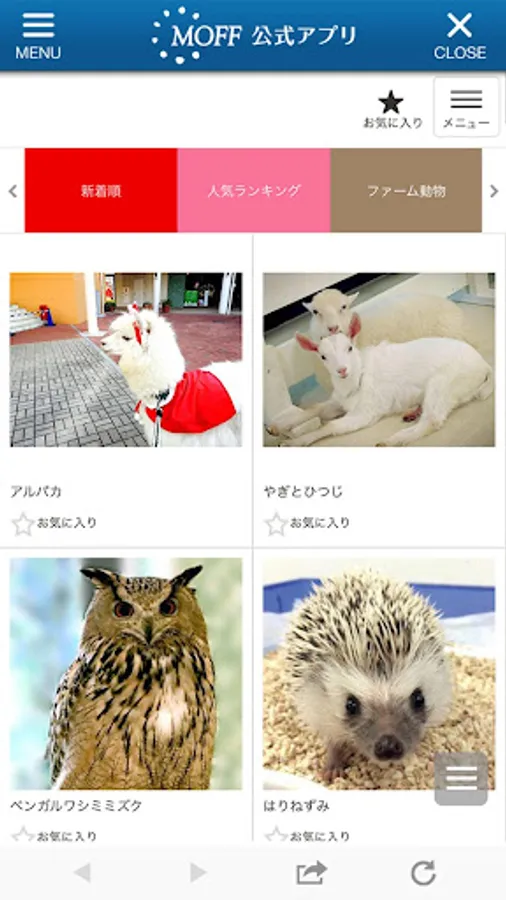 Rest assured even on rainy days! It is the official application of the MOFF facility that you can easily go to see animals!