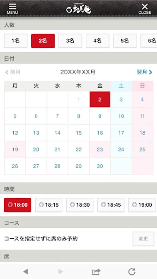 You can request a reservation just by specifying the desired number of people and the date and time and sending it.