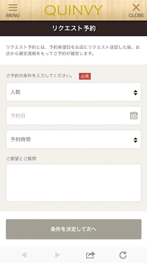 You can request a reservation by simply sending to specify the number, date, time, and time of hope.